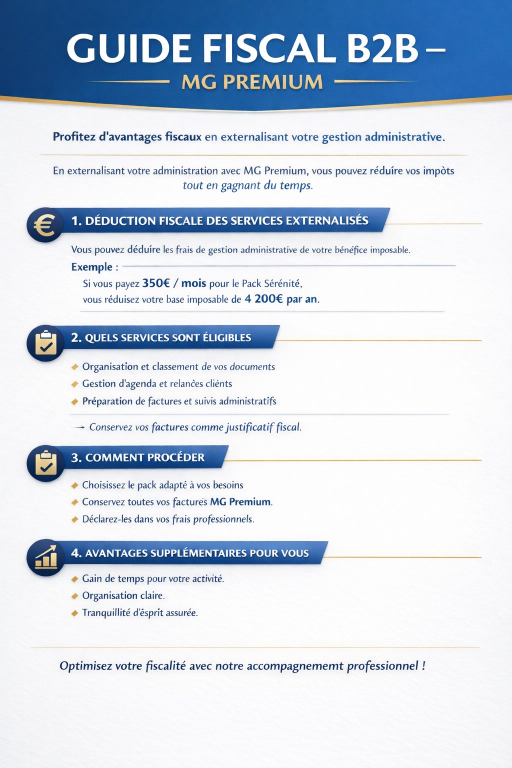 Un logiciel est un outil, mais il ne fait pas le travail à votre place. Chez MG Premium, nous utilisons les meilleurs outils pour gérer, organiser et suivre votre administratif pour vous. Vous gagnez du temps, évitez les erreurs et pouvez vous concentrer sur votre activité.
